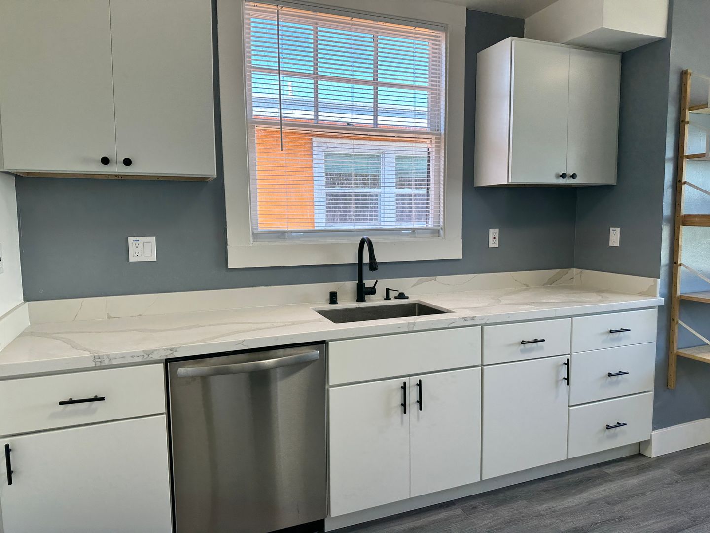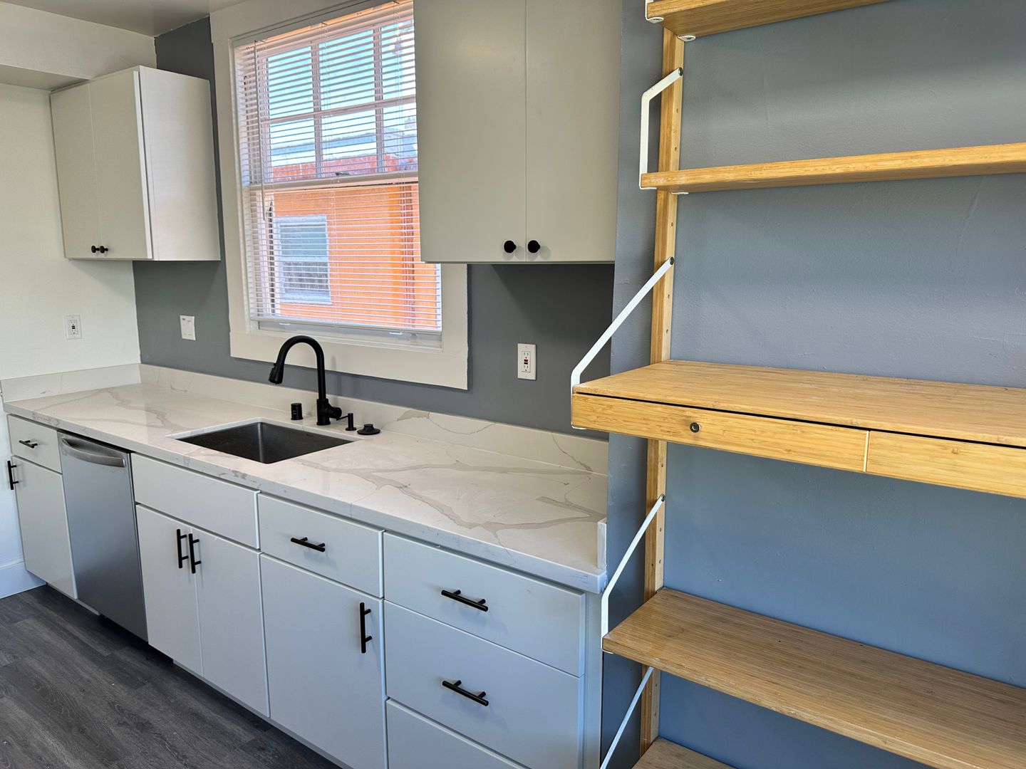 - New cabinets, appliances, and laminate flooring.