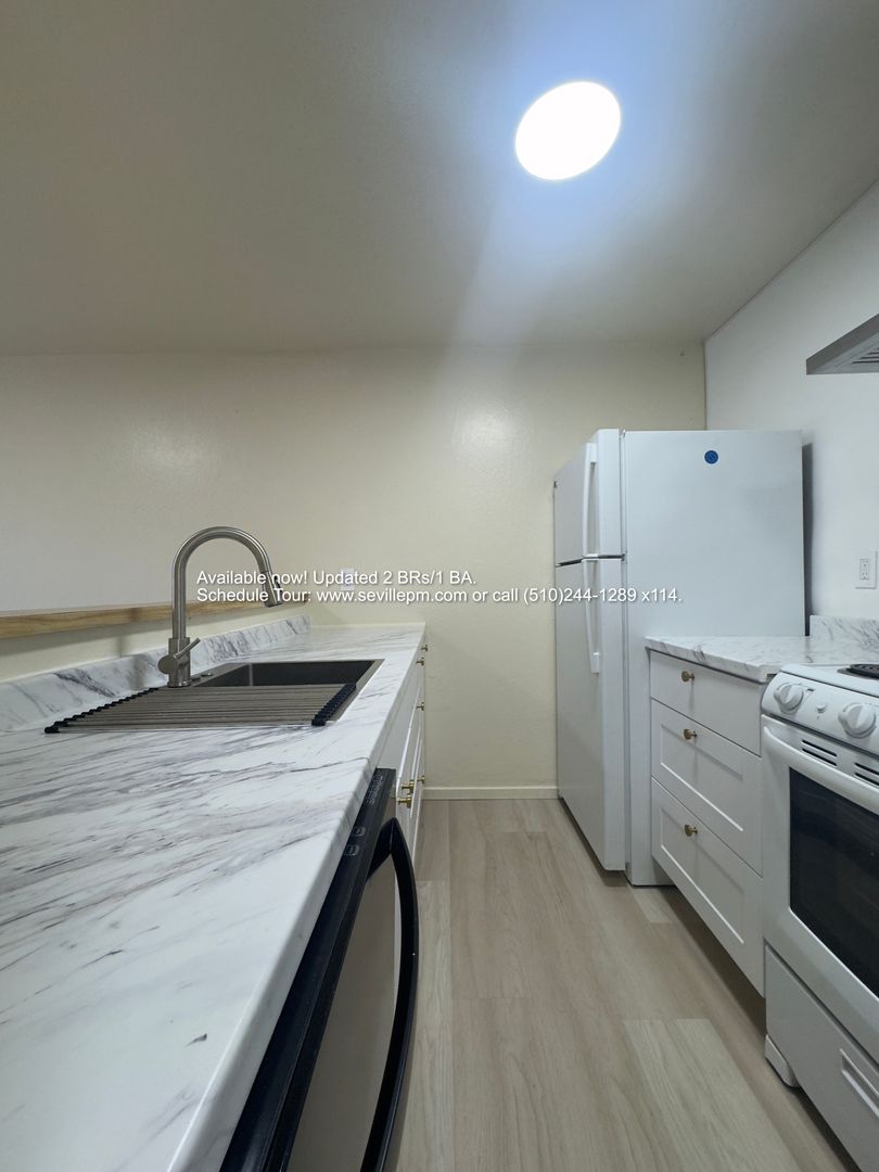 Welcome to the UPDATED 1st Floor 2BR/1BA Apartment, a gem located in the vibrant city of Oakland, CA. This apartment boasts two spacious bedrooms and a full bathroom, perfect for those seeking a comfortable living space. The interior has been recently updated with new laminate flooring throughout, giving it a fresh, modern look. The kitchen is equipped with new appliances, including a refrigerator, dishwasher, and an electric stove/oven, making meal prep a breeze. The apartment is conveniently located on the first floor, providing easy access. One of the key features of this property is its prime location. It's close to public transportation, making commuting hassle-free. It's also near freeways, providing quick access to the city's many attractions. Off-street parking is available, adding to the convenience. The apartment is also in close proximity to schools, making it an ideal location for those seeking educational opportunities. The interior has been freshly painted, adding to the overall appeal of the apartment. Experience the comfort and convenience of living in the updated 1st Floor 2BR/1BA Apartment.