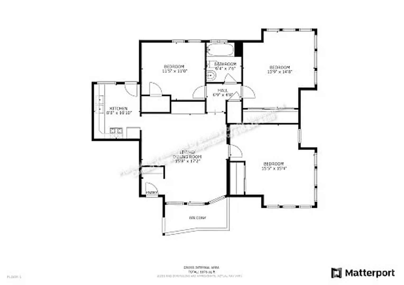 3 bedrooms / 1 bathroom