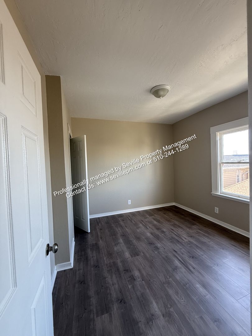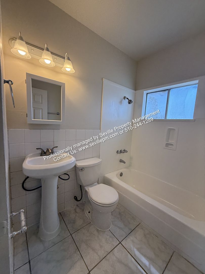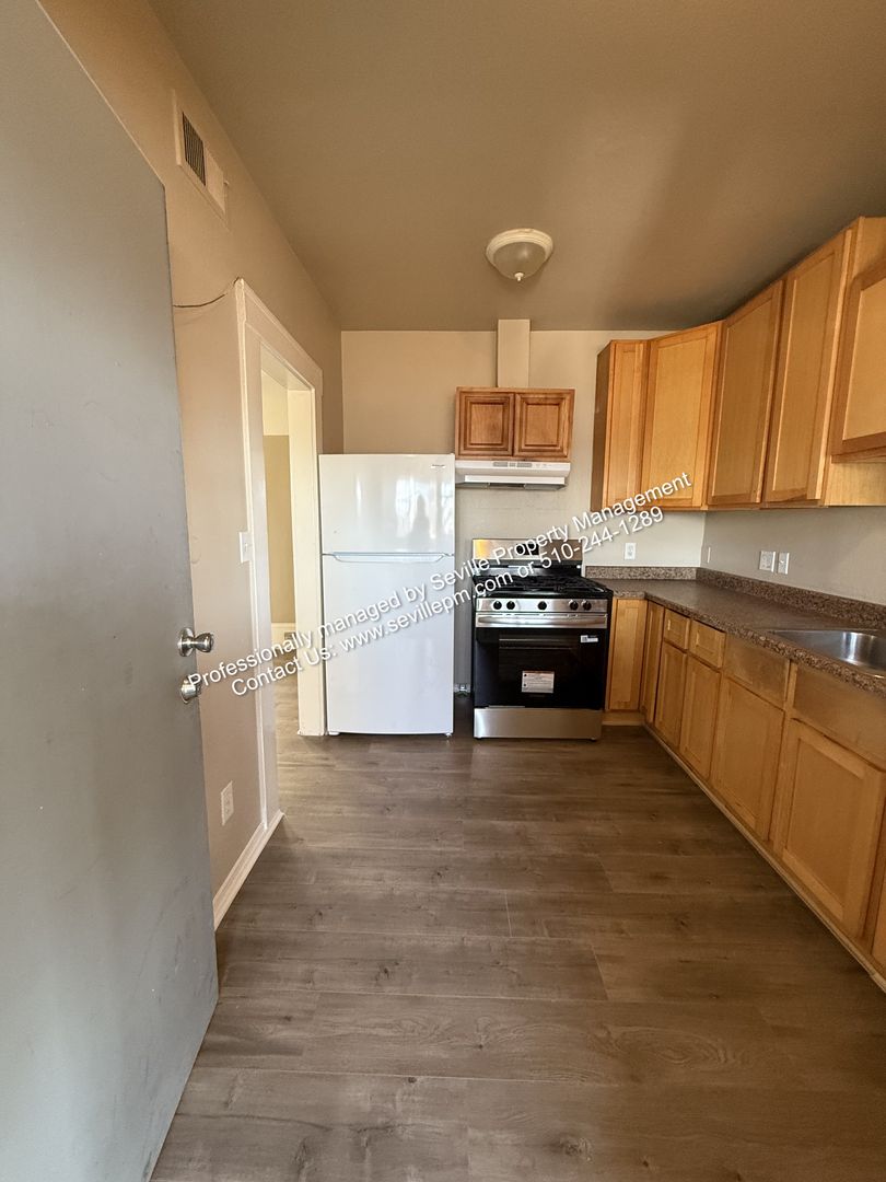 Welcome to your new home in W. Oakland! This move-in ready 3BR/1BA upstairs apartment is the perfect blend of comfort and convenience. The apartment features an updated kitchen with a refrigerator and a gas stove/oven. The bathroom has also been updated and has a new pedestal sink, toilet, and shower/tub combo. The laminate flooring throughout adds a nice touch and is easy to maintain. The apartment is bathed in natural light, creating a warm and inviting atmosphere. The interior has been recently painted, giving it a fresh and modern look. The large shared backyard is perfect for outdoor activities, and the shared laundry onsite adds to your convenience. For those who commute, the apartment's location is ideal. It's close to public transportation, including buses and BART, and is also near freeways for easy access to the rest of the city. For those who value their health, the apartment is close to hospitals and parks. Schools are also nearby, making it a great location for lifelong learners. The gated access provides an added layer of comfort, and bike storage racks are available for those who prefer to cycle. Shopping centers are close by making it easy to run errands or enjoy a day out. This apartment is not just a place to live, but a lifestyle. Make it yours today!