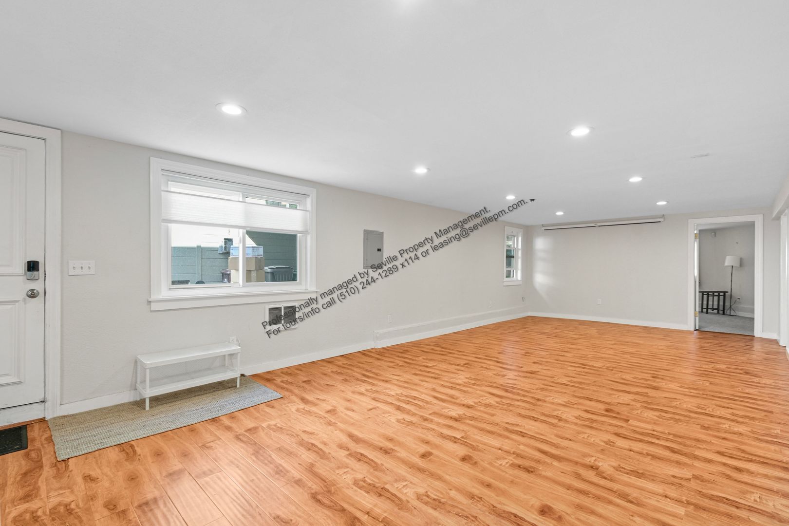 * Large living area with laminate flooring